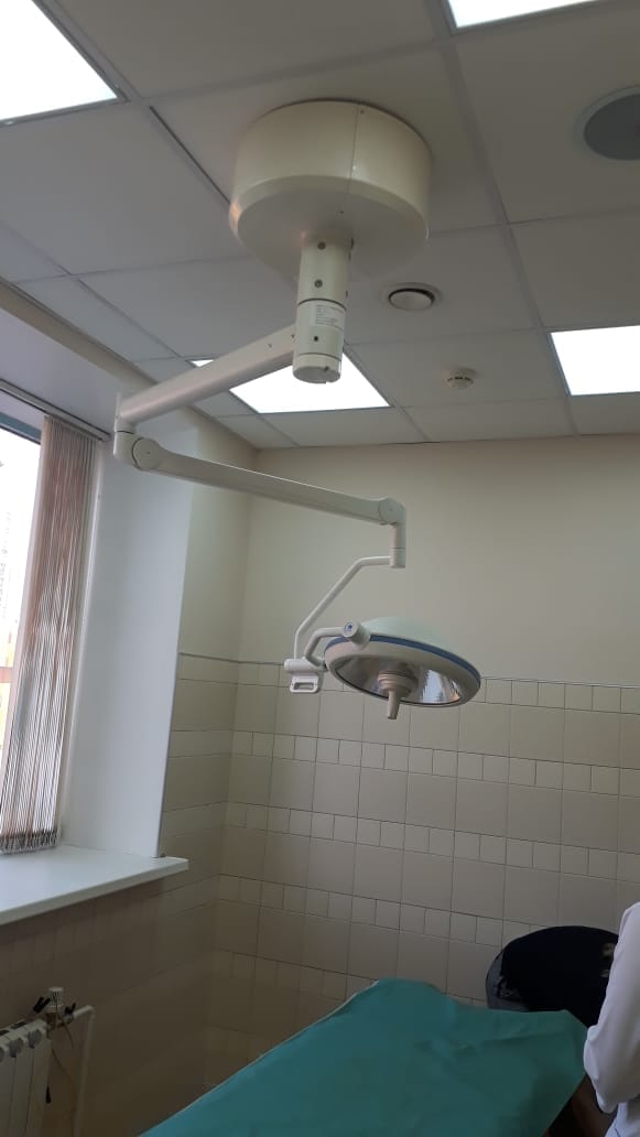 Светильник хирургический для оснащения операционных блоков и перевязочных, для использования при хирургических операциях и диагностических обследованиях; система мультизеркального отражения для обеспечения бестеневого освещения; система автоматического переключения на резервную лампу; защита от нагрева области головы хирурга и операционного поля (инфракрасный фильтр); система подвеса с широким диапазном перемещения и вращения осветительного блока; пульт управления системой на осветительном блоке; плавная регулировка интенсивности освещения; стабильные электрические параметры.