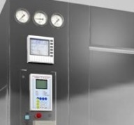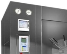 Форвакуумный проходной стерилизатор объемом 400 литров с автоматическими слайдовыми дверями.